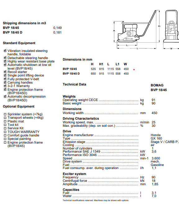 Pladevibrator, Bomag BVP 18/45